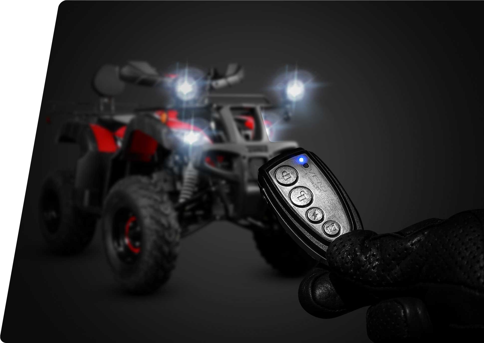 Con encendido y apagado a control remoto, sensores de movimiento y botón de pánico.